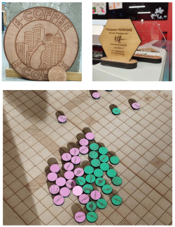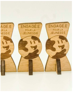 Gravures et découpes sur bois faites à la découpeuse laser ce qui permet de réaliser de nombreux projets. Exemples : logos, supports de communication, trophées, portes clefs, jeux de plateaux, outils de médiations, ou encore du mobilier. |